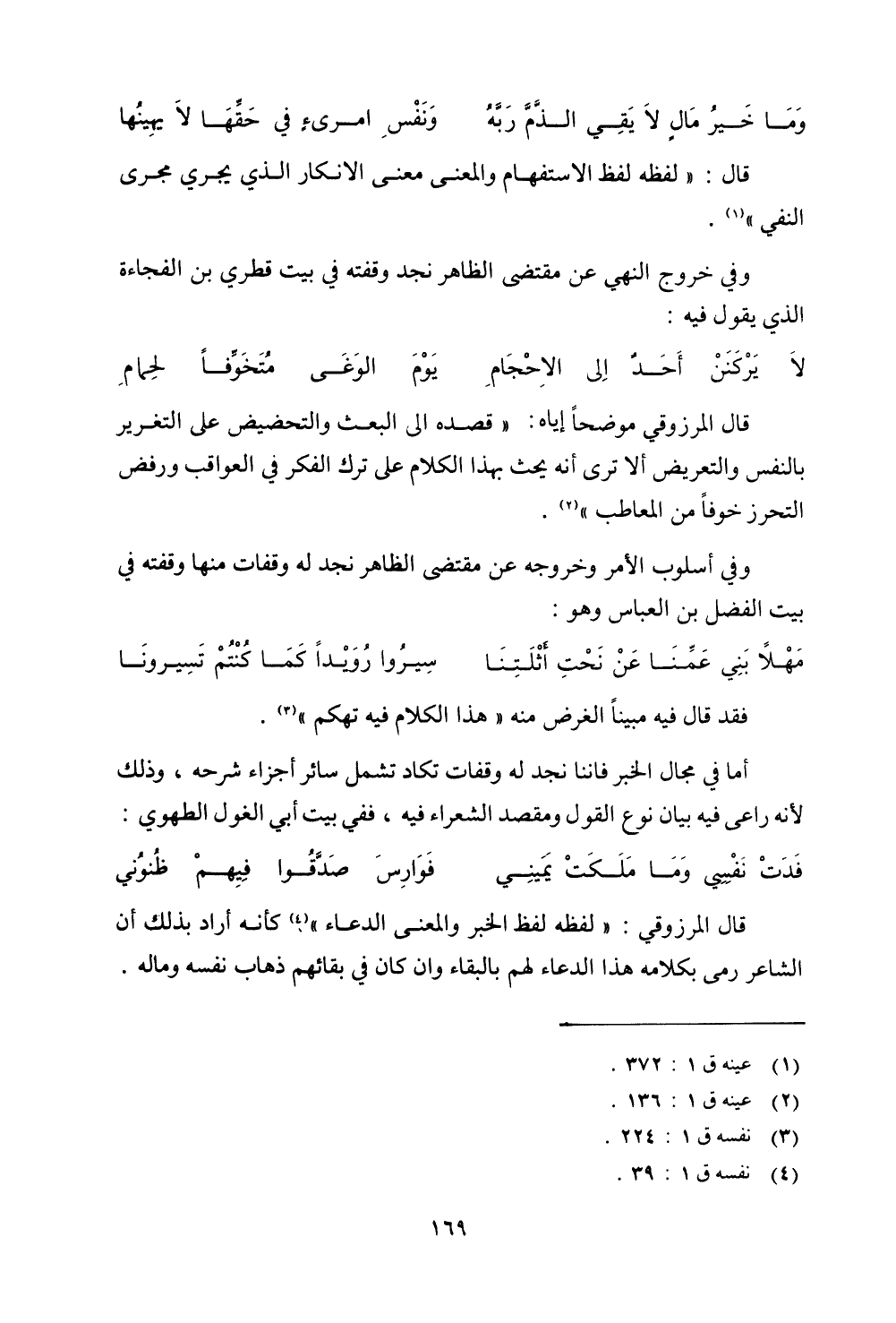 وفي خروج النهي عن مقتضى الظاهر نجد وقفته في بيت قطري بن الفجاءة الذي يقول فيه:
