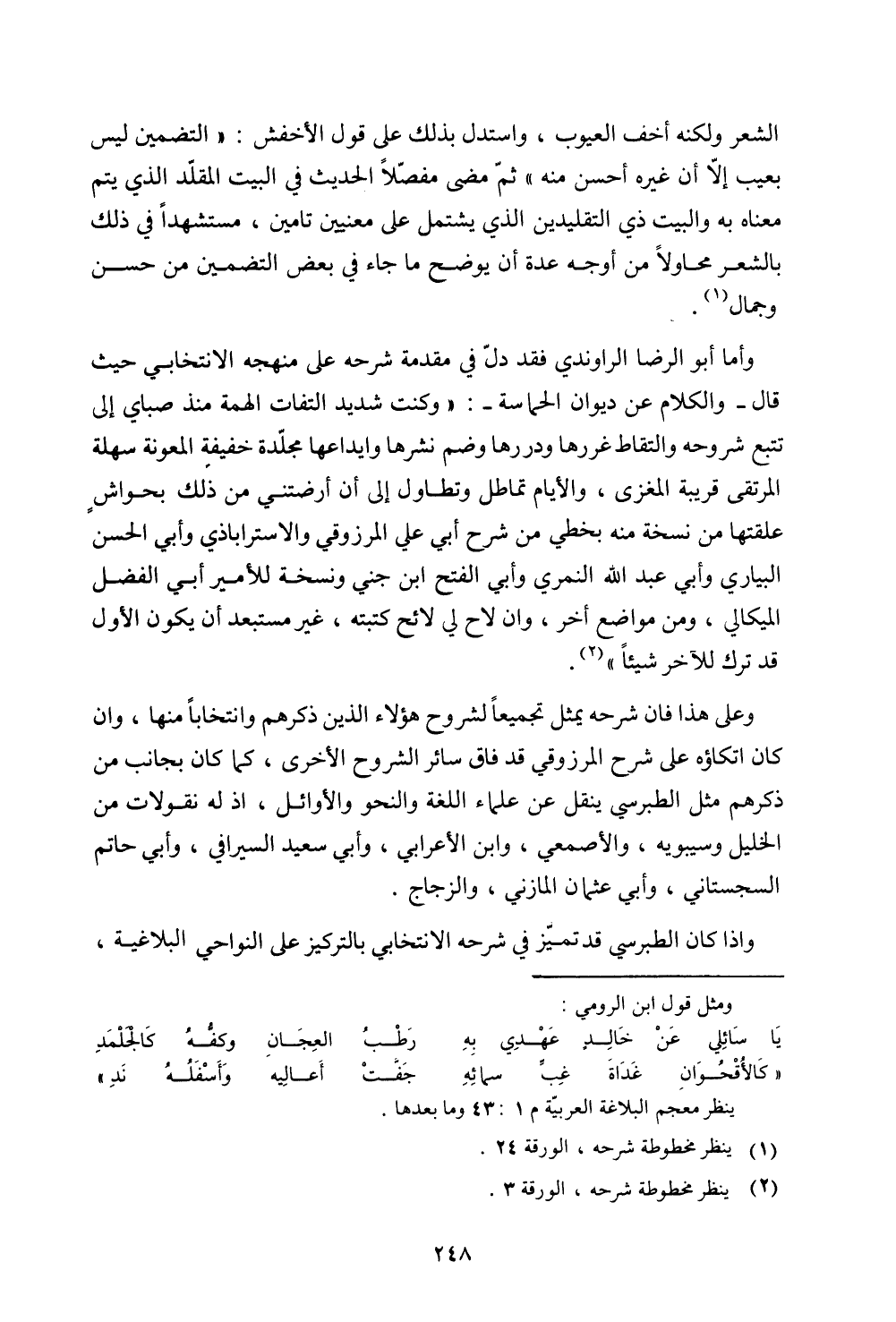 وإذا كان الطبرسي قد تميز في شرحه الانتخابي بالتركيز علي النواحي البلاغية،