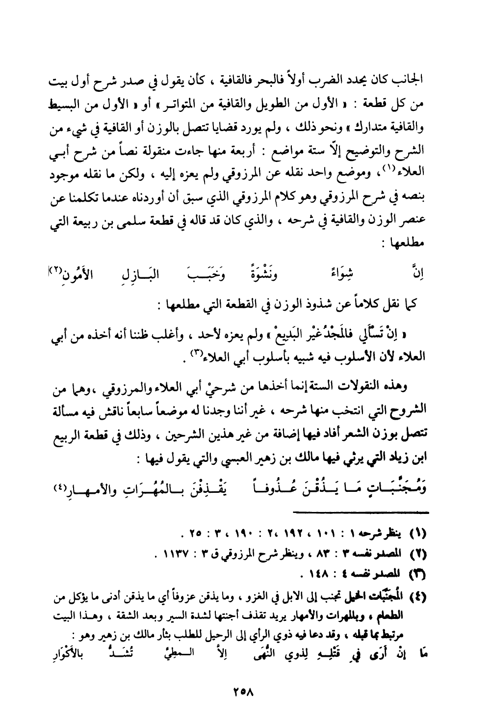 كما نقل كلامًا عن شذوذ الوزن في القطعة التي مطلعها: