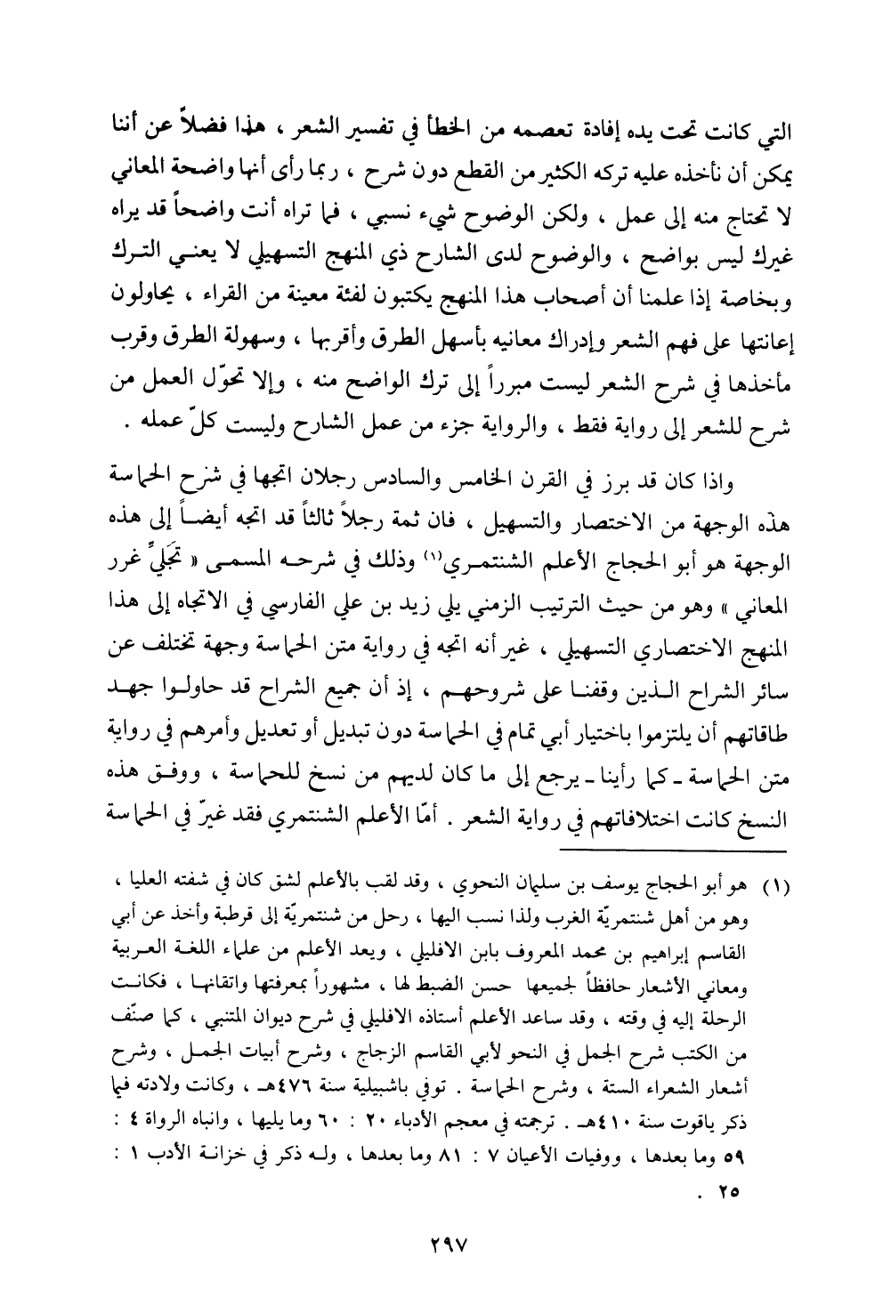 التي كانت تحت يده إفادة تعصمه من الخطأ في تفسير الشعر، هذا فضلًا عن أننا يمكن أن نأخذه عليه تركه الكثير من القطع دون شرح، ربما رأى أنها واضحة المعاني لا تحتاج منه إلى عمل، ولكن الوضوح شيء نسبي، فما تراه أنت واضحًا قد يراه غيرك ليس بواضح، والوضوح لدى الشارح ذي المنهج التسهيلي لا يعني الترك وبخاصة إذا علمنا أن أصحاب هذا المنهج يكتبون لفئة معنية من القراء، يحاولون إعانتها على فهم الشعر وإدراك معانيه بأسهل الطرق وأقربها، وسهولة الطرق وقرب مأخذها في شرح الشعر ليست مبررًا إلى ترك الواضح منه، وإلا تحول العمل من شرح للشعر إلى رواية فقط، والرواية جزء من عمل الشارح وليست كل عمله.