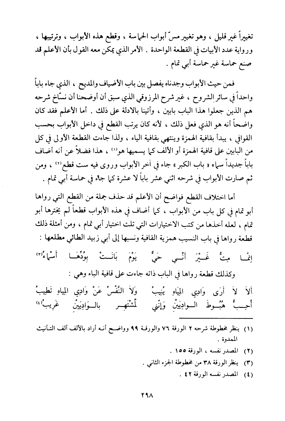 تغييرًا غير قليل، وهو تغيير مس أبواب الحماسة، وقطع هذه الأبواب، وترتيبها، ورواية عدد الأبيات في القطعة الواحدة. الأمر الذي يمكن معه القول بأن الأعلم قد صنع حماسة غير حماسة أبي تمام.