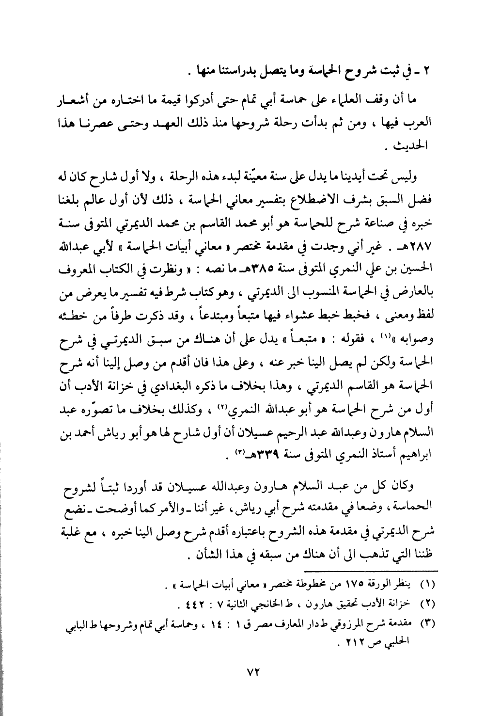 2 - في ثبت شروح الحماسة وما يتصل بدراستنا منها.