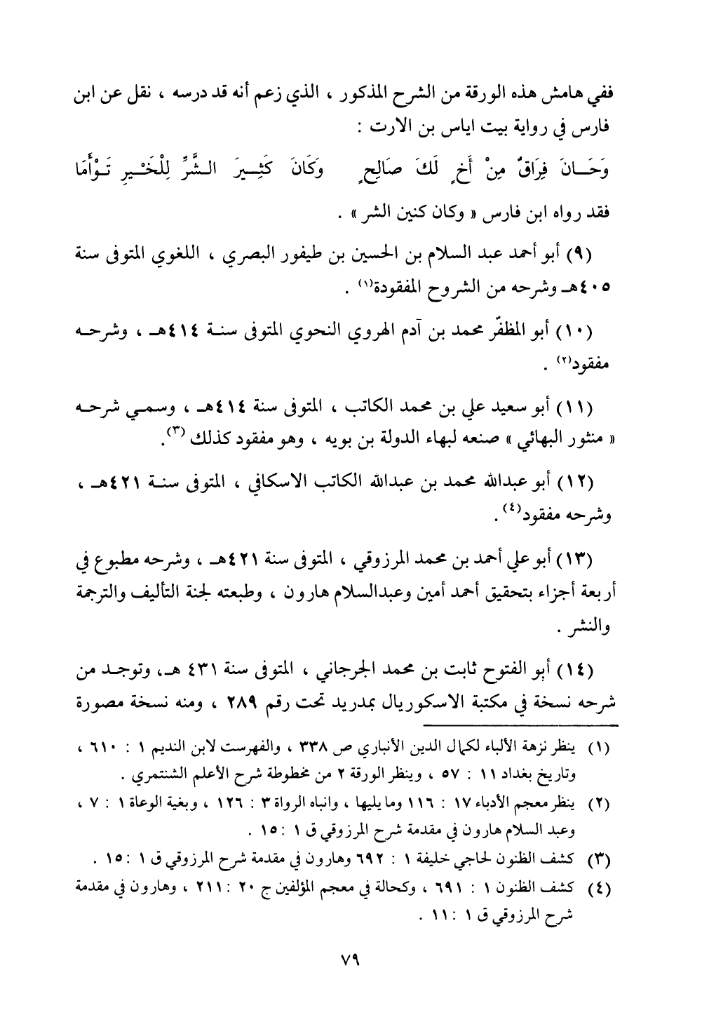 (9) أبو أحمد عبد السلام بن الحسين بن طيفور البصري، اللغوي المتوفى سنة 405 هـ وشرحه من الشروح المفقودة.