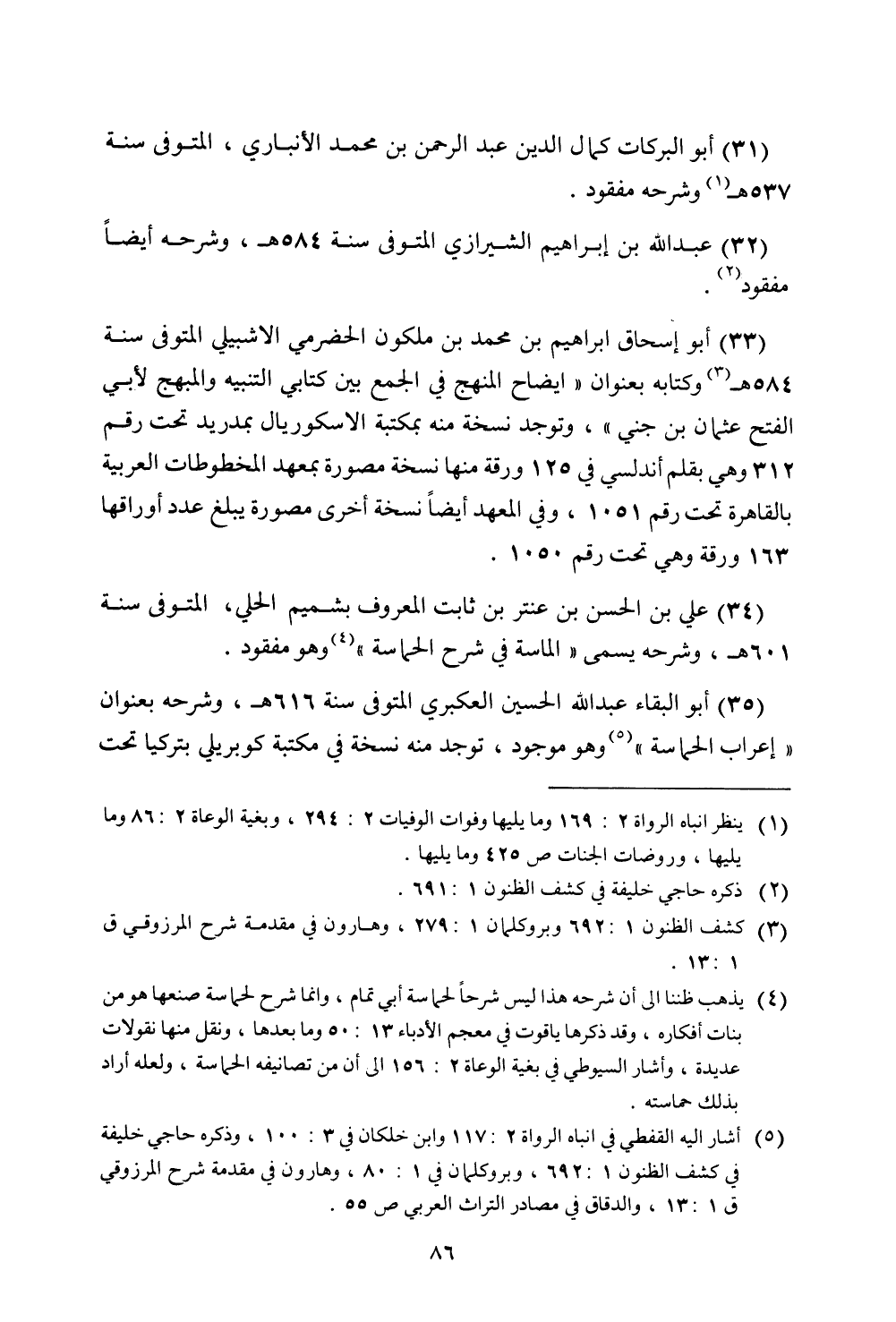(35) أبو البقاء عبد الله الحسين العكبري المتوفى سنة 616 هـ، وشرحه بعنوان "إعراب الحماسة" وهو موجود، توجد منه نسخة في مكتبة كوبريلي بتركيا تحت
