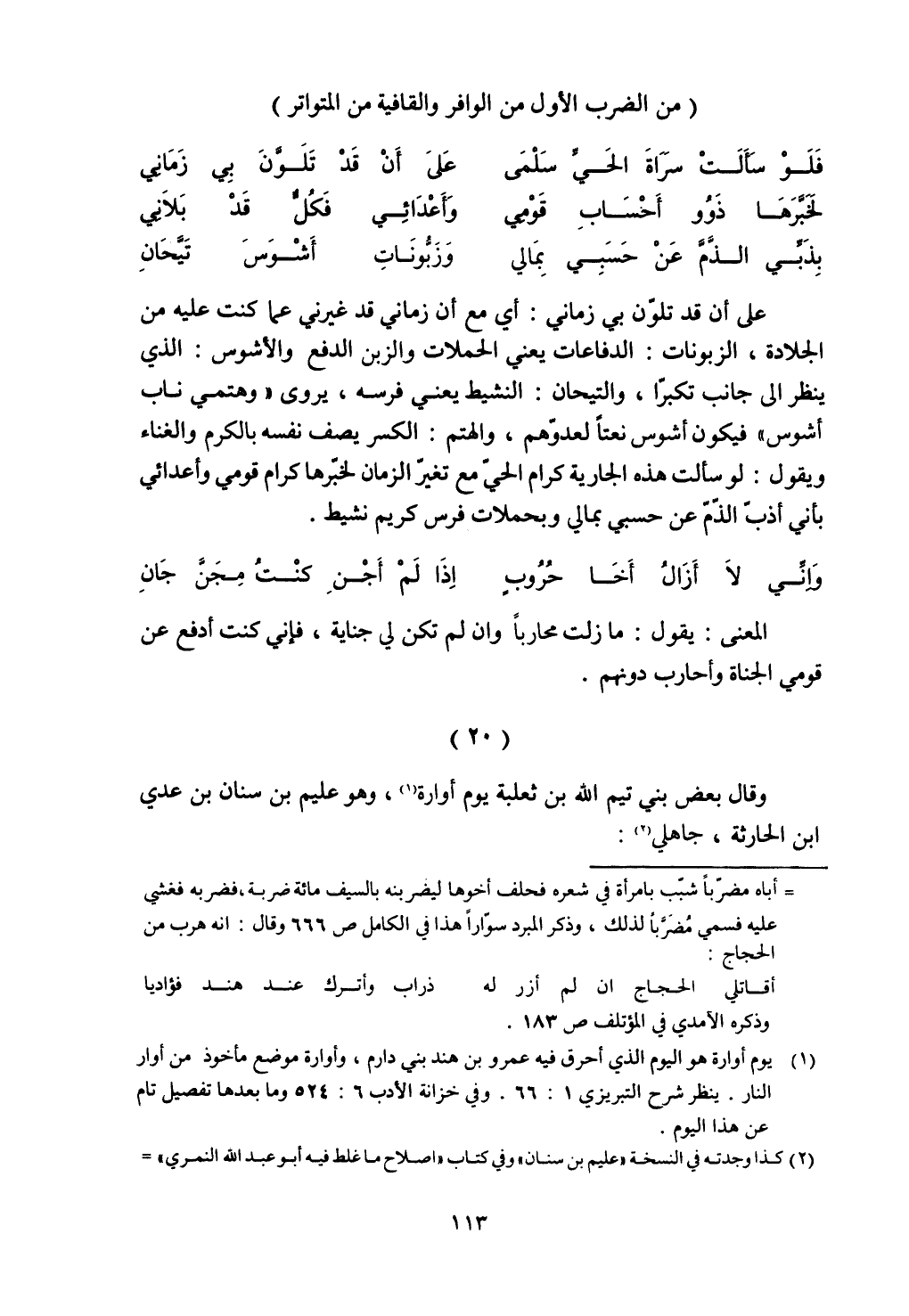 (من الضرب الأول من الوافر والقافية من المتواتر)