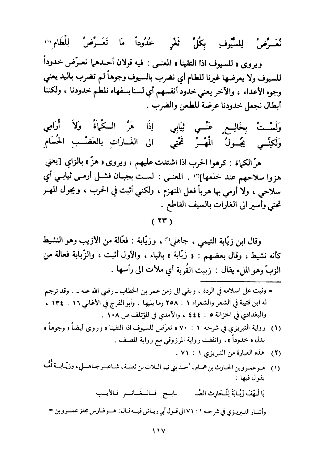 وقال ابن زيابة التيمي، جاهلي، وزيابة: فعالة من الأزيب وهو النشيط كأنه نشيط، وقال بعضهم: "زبابة" بالباء، والأول أثبت، والزبابة فعالة من الزب وهو الملء يقال: زببت القُربة أي ملأت إلى رأسها.