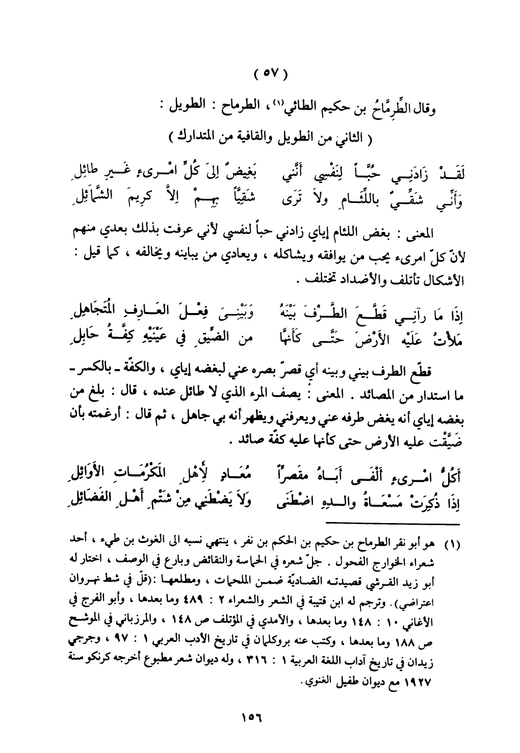 وقال الطرماح بن حكيم الطائي، الطرماح: الطويل: