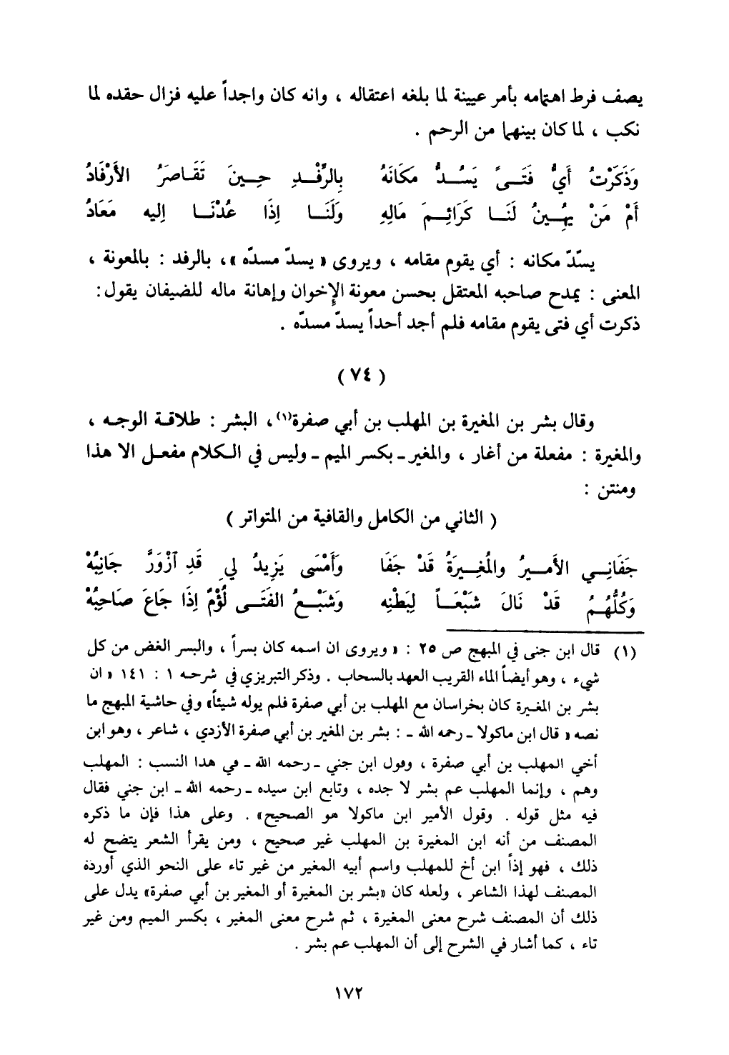 وقال بشر بن المغيرة بن المهلب بن أبي صفرة، البشر: طلاقة الوجه، والمغيرة: مفعلة من أغار، مفعلة من أغار، والمغير - بكسر الميم - وليس في الكلام مفعل إلا هذا ومنتن: