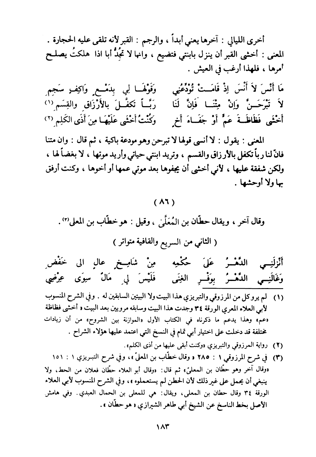 وقال آخر, ويقال حطان بن المعلَّى, وقيل: هو خطاب بن المعلى.