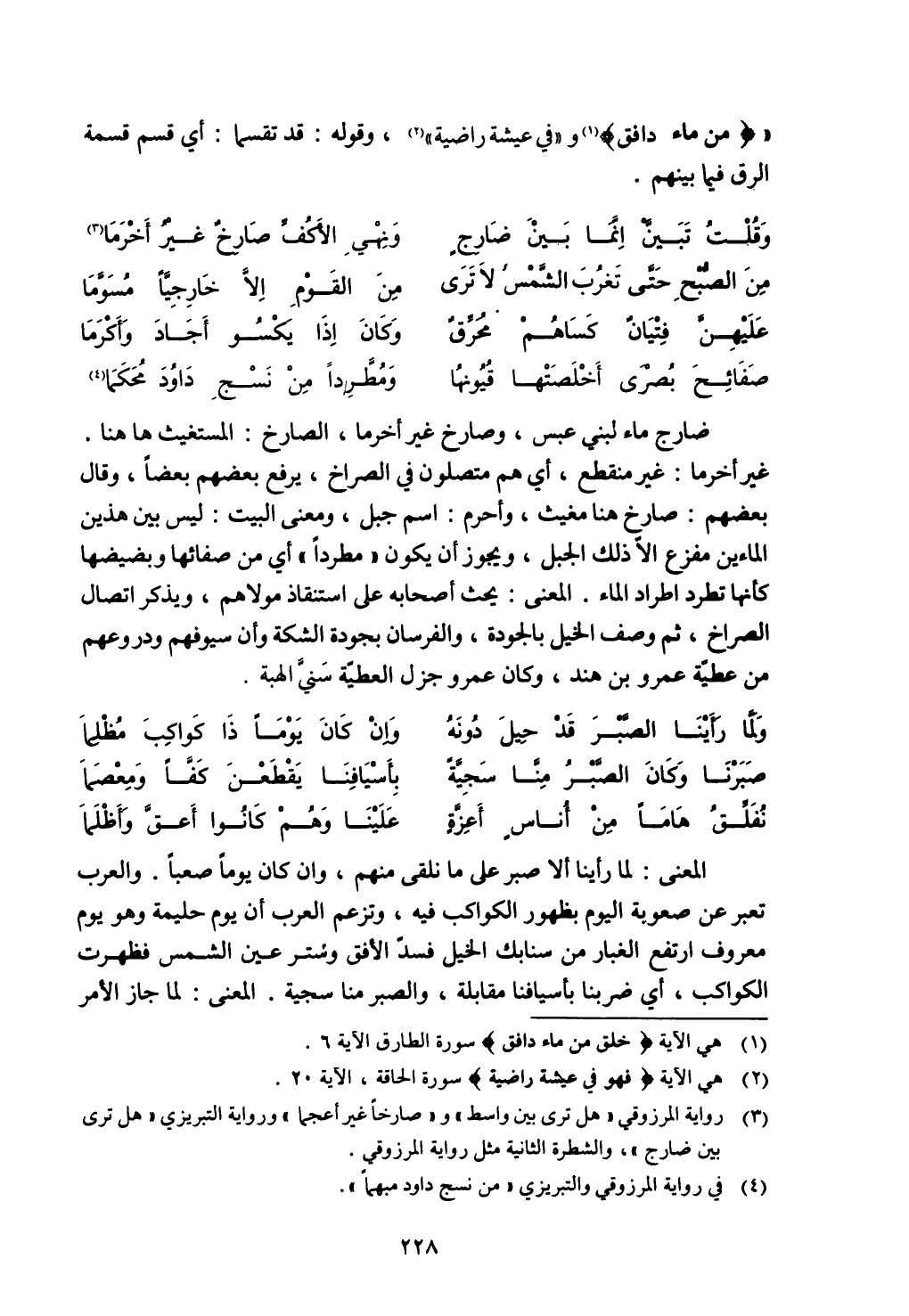 (من ماء دافق) و "في عشية راضية"، وقوله: قد تقسما: أي قسم قسمة الرق فيما بينهم.
