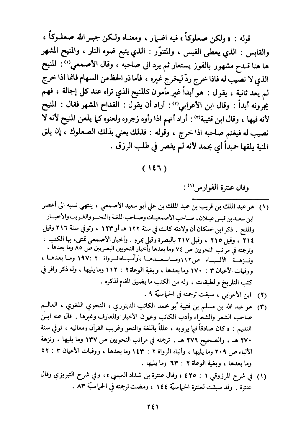 قوله: "ولكن صعلوكا" فيه إضمار، ومعناه ولكن جبر الله صعلوكاً، والقابس: الذي يعطي القبس، والمتنور: الذي يتبع ضوء النار، والمنيح المشهر ها هنا قدح مشهور بالفوز يستعار ثم يرد إلى صاحبه، وقال الأصمعي: المنيح الذي لا نصيب له فإذا خرج رد ليخرج غيره، فأما ذو الحظ من السهام فإنما إذا خرج لم يعد ثانية، يقول: هو أبدا غير مأمون كالمنيح الذي تراه عند كل إجالة، فهم يجرونه أبداً: وقال ابن الأعرابي: أراد أن يقول: القداح المشهر فقال: المنيح لأنه فيها، وقال ابن قتيبة: أراد أنهم إذا رأوه زجروه ولعنوه كما يلعن المنيح لأنه لا نصيب له فيغتم صاحبه إذا خرج، وقوله: فذلك يعني بذلك الصعلوك، إن يلق المنية يلقها حميدا أي يحمد لأنه لم يقصر في طلب الرزق.