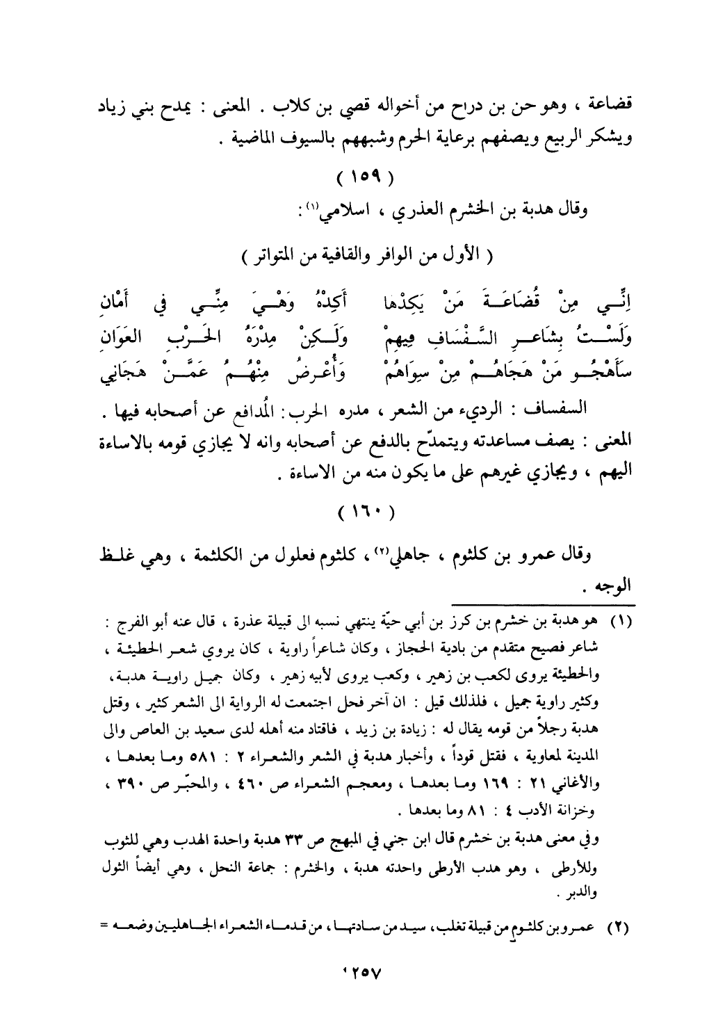 وقال هدبة بن الخشرم العذري، إسلامي: