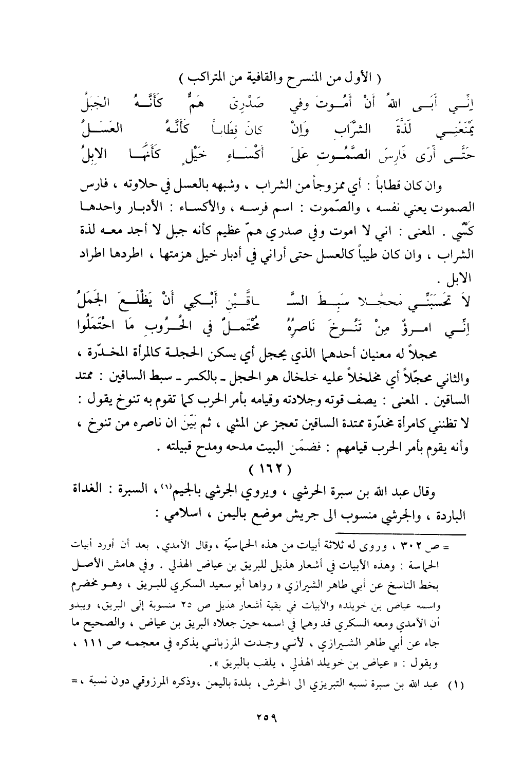 وقال عبد الله بن سيرة الحرشي، ويروي الجرشي بالجيم، السبرة: الغداة الباردة، والجرشي منسوب إلى جريش موضع باليمن، إسلامي: