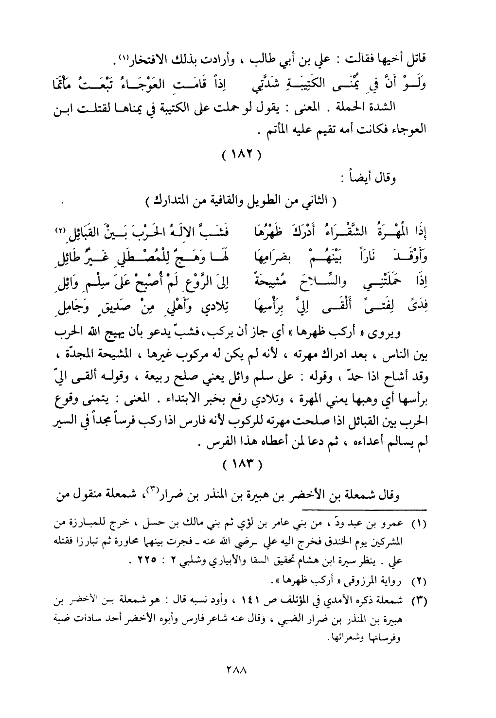 وقال شمعلة بن الأخضر بن هبيرة بن المنذر بن ضرار، شمعلة منقول من