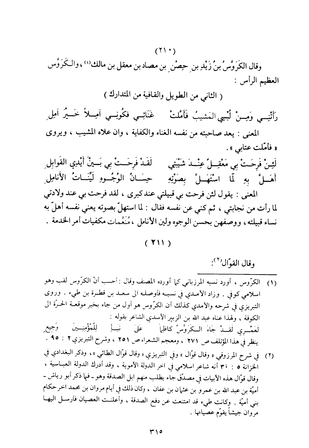 وقال الكروس بن زيد بن حصن بن مصاد بن معقل بن مالك، والكروس العظيم الرأس: