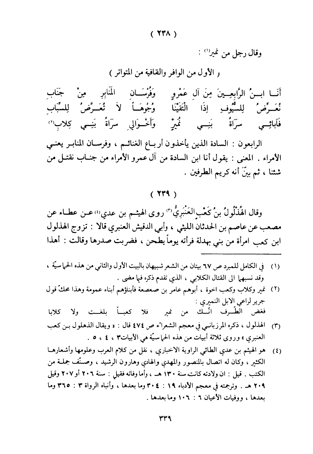 فآبائي سراة بني نمير ... وأخوالي سراة بني كلاب