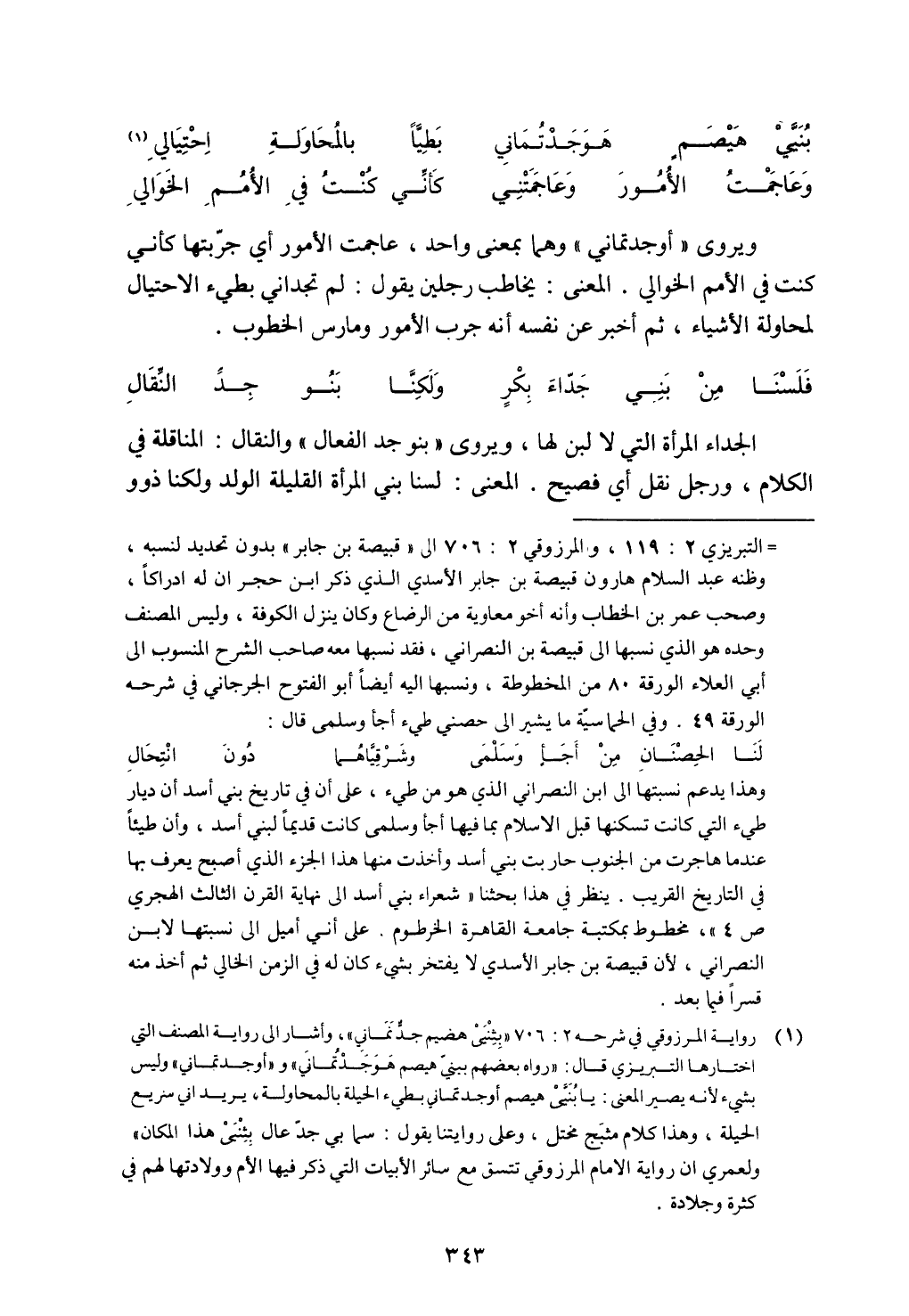 الجداء المرأة التي لا لبن لها، ويروى "بنو جد الفعال" والنقال: المناقلة في الكلام، ورجل نقل أي فصيح. المعني: لسنا بني المرأة القليلة الولد ولكنا ذوو