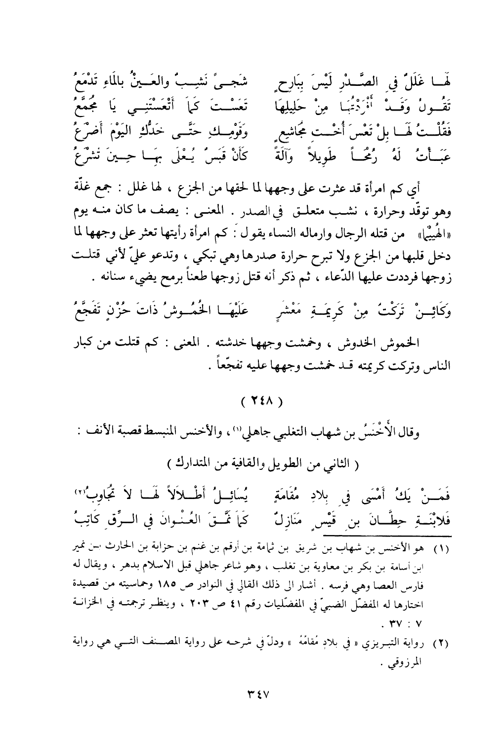 ذوقال الأخنس بن شهاب التغلبي جاهلي، الأخنس المنبسط قصبة الأنف: