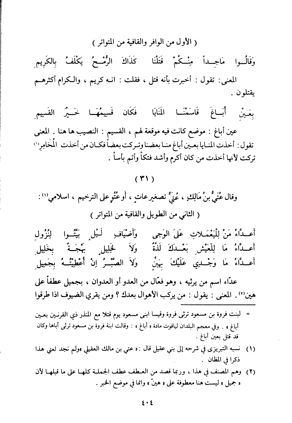 عين أباغ: موضع كانت فيه موقعة لهم، القسيم: النصيب ها هنا. المعنى تقول: أخذت المنايا بعين أباغ منا بعضنا وتركت بعضًا فكان من أخذت المُخامر تركت لأنها أخذت من كان أكرم وأشد فتكًا وأتم بأسًا.