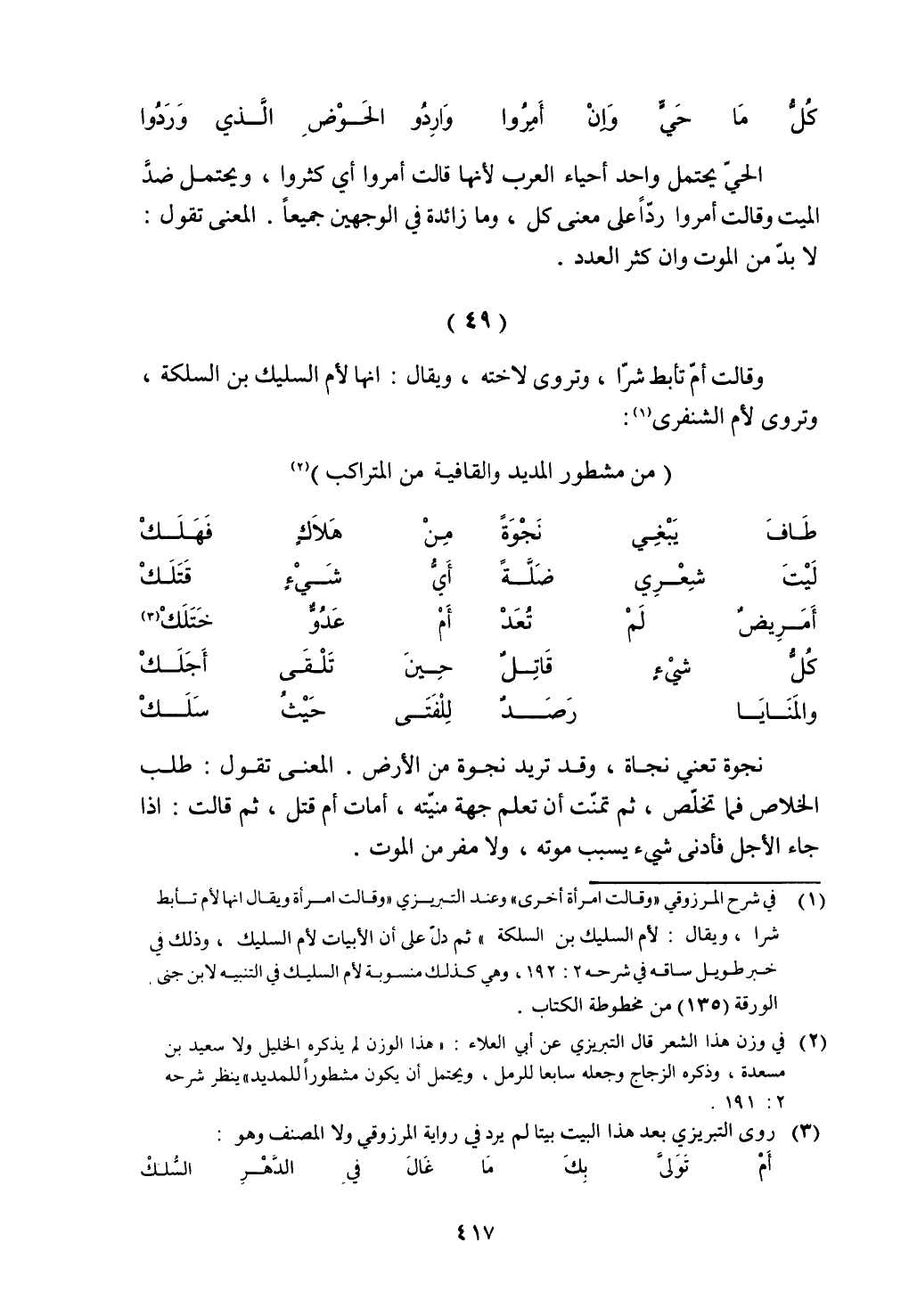 وقالت أم تأبط شرا، وتروى لأخته، ويقال: أنها لأم السليك بن السلكة، وتروي لأم الشنفري: