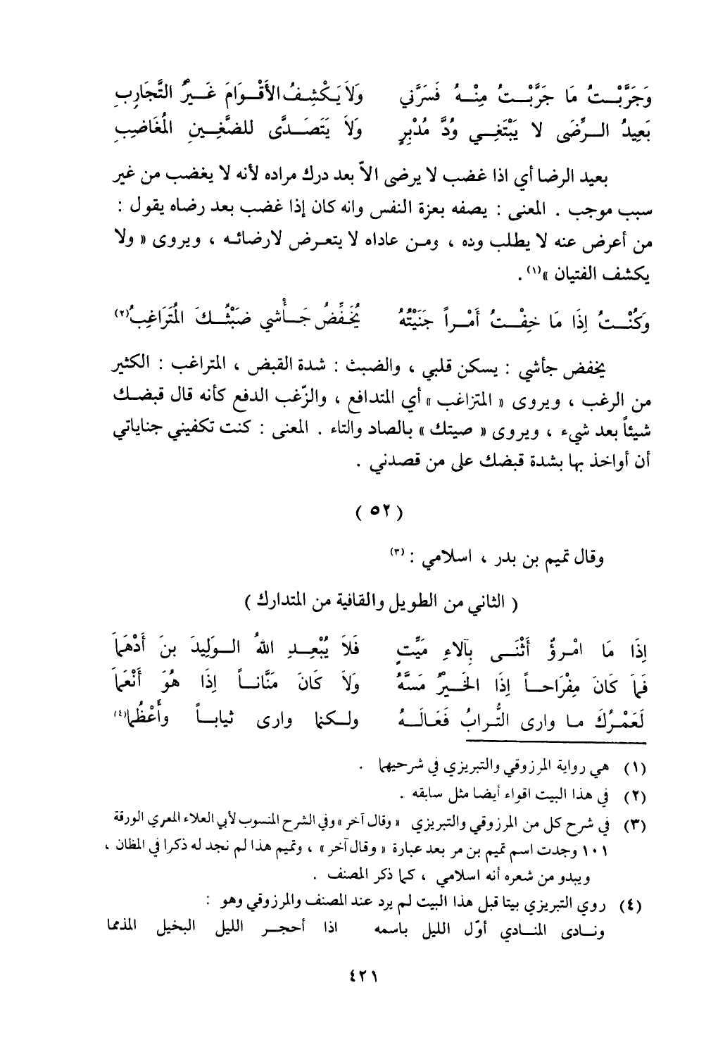 بعيد الرضا أي إذا غضب لا يرضى إلا بعد درك مراده لأنه لا يغضب من غير سبب موجب. المعنى: يصفه بعزة النفس وإنه كان إذا غضب بعد رضاه يقول: من أعرض عنه لا يطلب وده، ومن عاداه لا يتعرض لإرضائه، ويروي "ولا يكشف الفتيان".