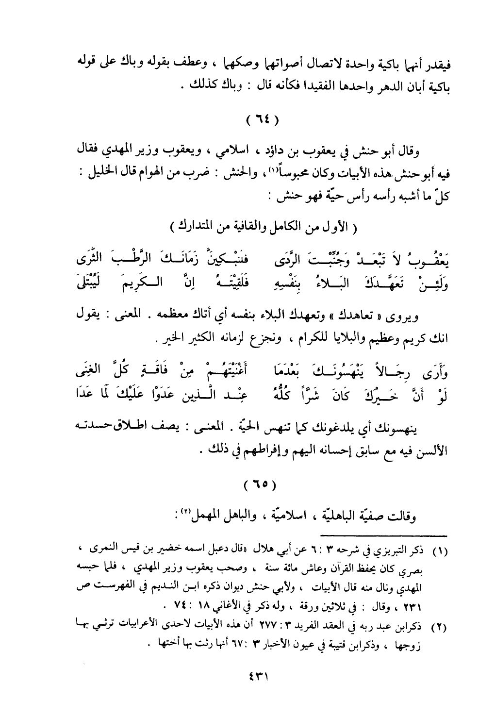 وقالت صفية الباهلية، إسلامية، والباهل المهمل: