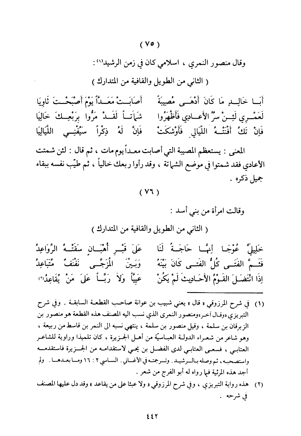 وقال منصور النمري، إسلامي كان في زمن الرشيد: