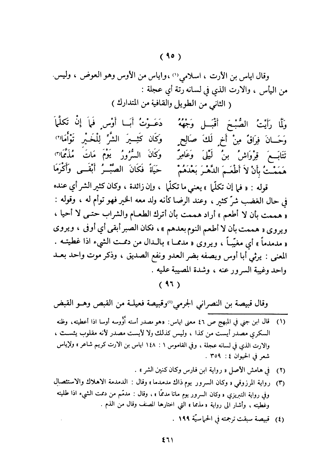 وقال قبيصة بن النصراني الجرمي وقبيصة فعيلة من القبض وهو القبض
