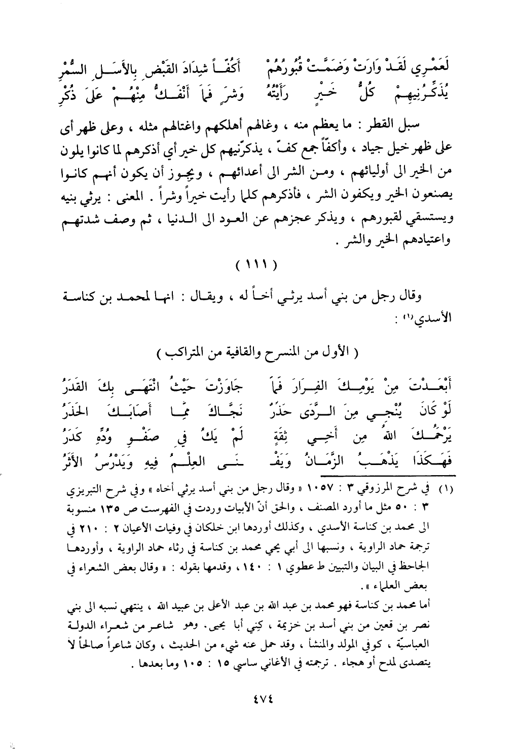 وقال رجل من بني أسد يرثي أخًا له، ويقال: أنها لمحمد بن كناسة الأسدي: