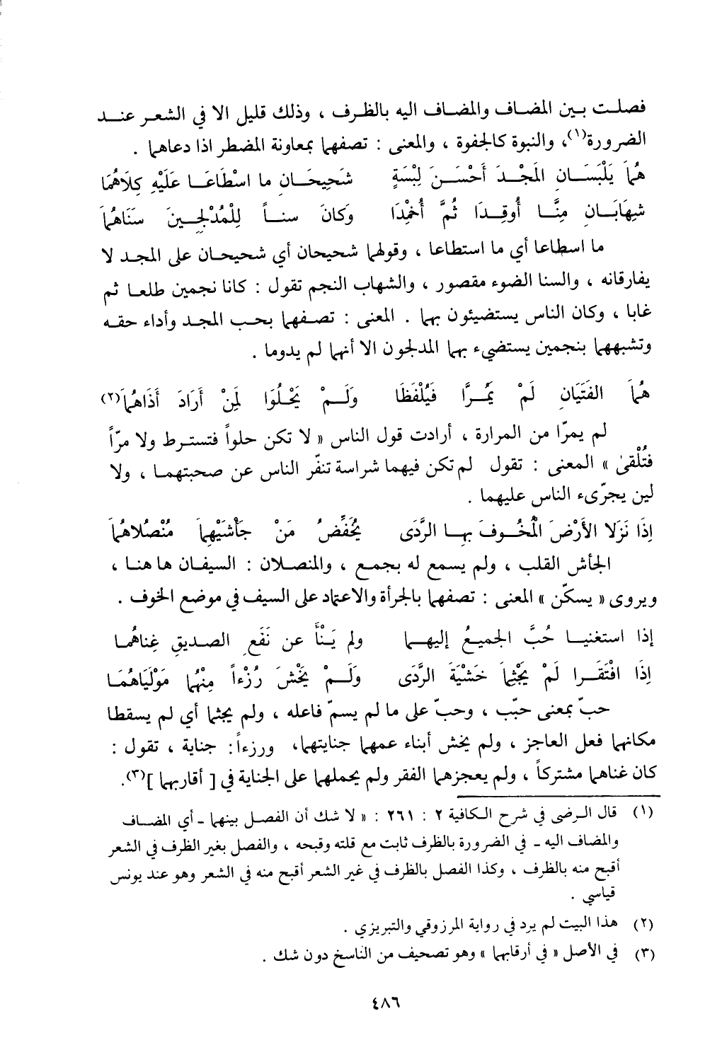 ما اسطاعا أي ما استطاعا، وقولهما شحيحان أي شحيحان على المجد لا يفارقانه، والسنا الضوء مقصور، والشهاب النجم تقول: كانا نجمين طلعا ثم غابا، وكان الناس يستضيئون بهماز المعنى: تصفهما بحب المجد وأداء حقه وتشبههما بنجمين يستضيء بهما المدلجون إلا أنهما لم يدوما.