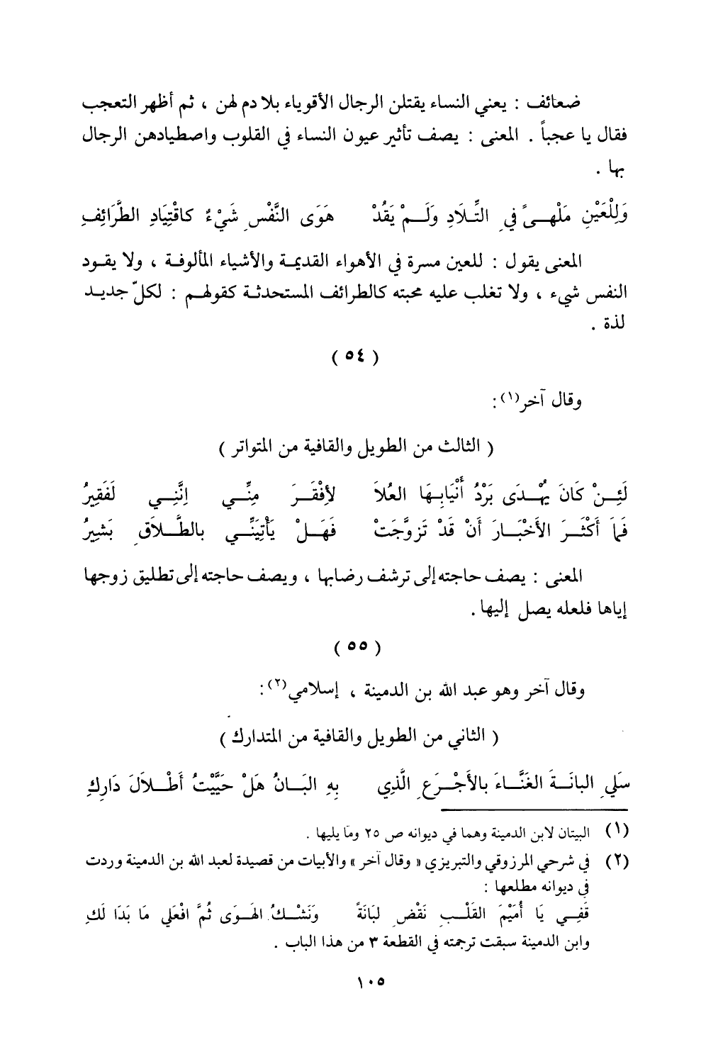 وقال آخر وهو عبد الله بن الدمينة، إسلامي: