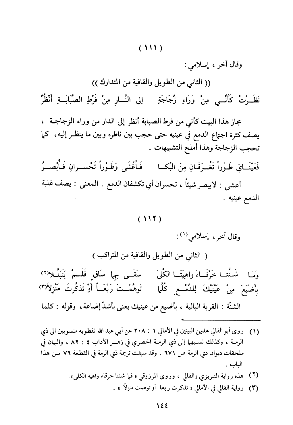 فعيناي طورًا تغرقان من البكا فأغشى وطورًا تحسران فأبصر