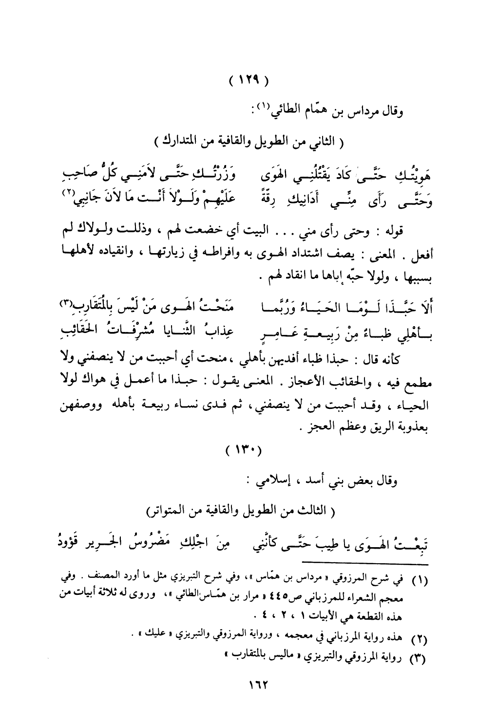 ألا حبذا لومًا الحياء وربما منحت الهوى من ليس بالمتقارب