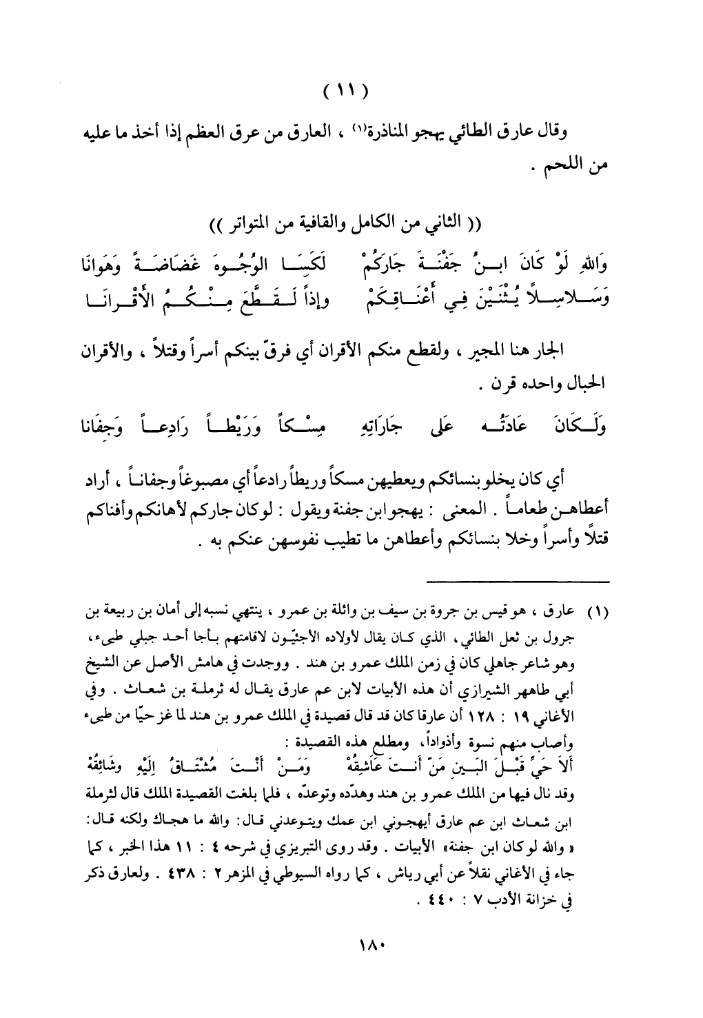 وقال عارق الطائي يهجو المناذرة، العارق من عرق العظم إذا أخذ ما عليه من اللحم.