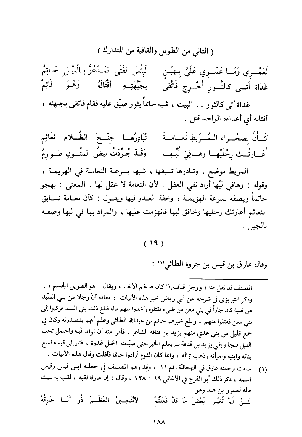 وقال عارق بن قيس بن جروة الطائي: