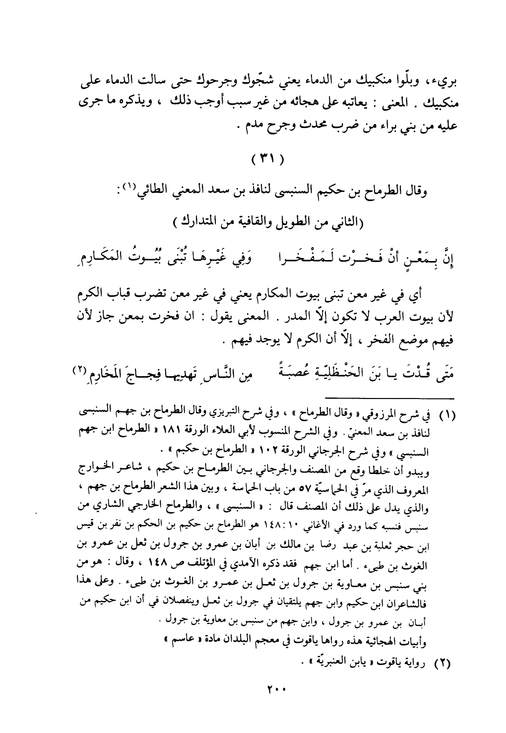 وقال الطرماح بن حكيم السنبسي لنافذ بن سعد المعني الطائي: