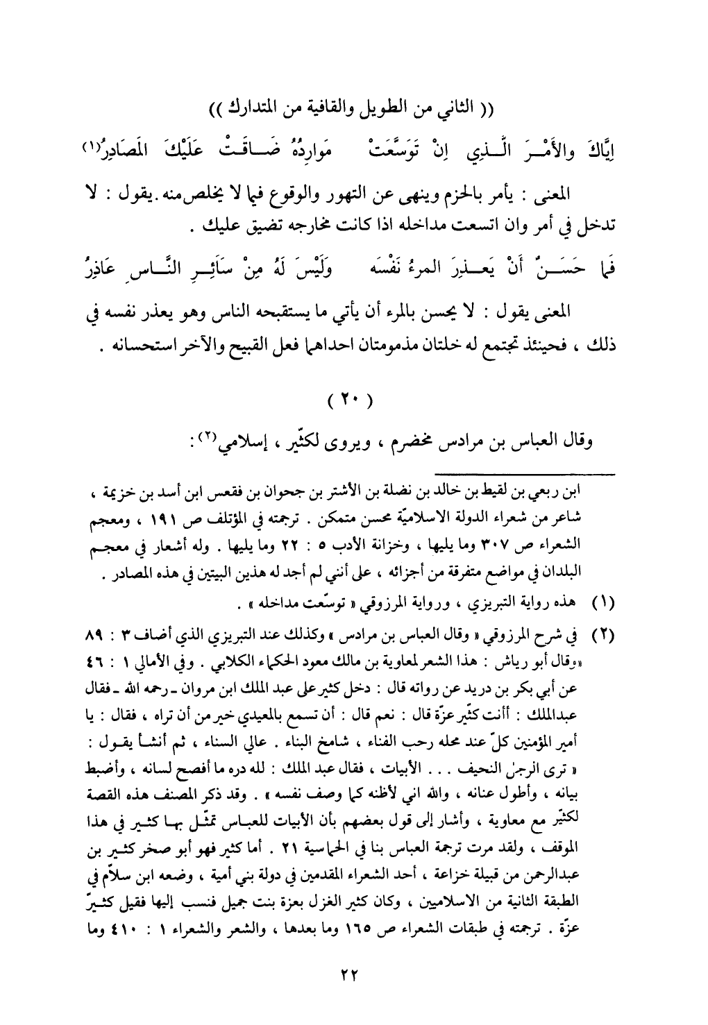 وقال العباس بن مرداس مخضرم, ويروي لكثير, إسلامي: