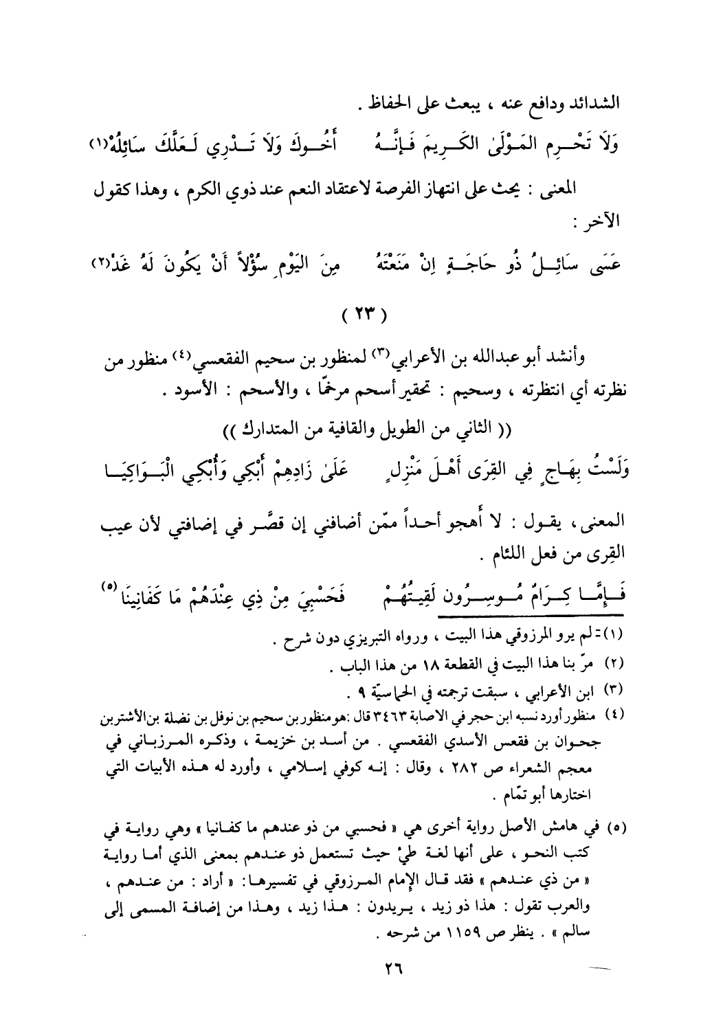 عسى سائل ذو حاجٍة إن منعته من اليوم سؤلًا أن يكون له غد