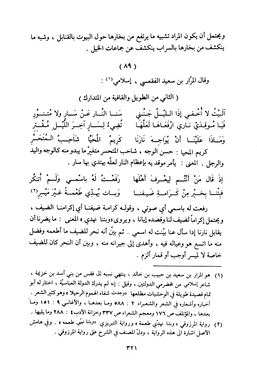 فيا موقدي ناري ارفعاها لعلها تضيء لساٍر آخر الليل مقتر