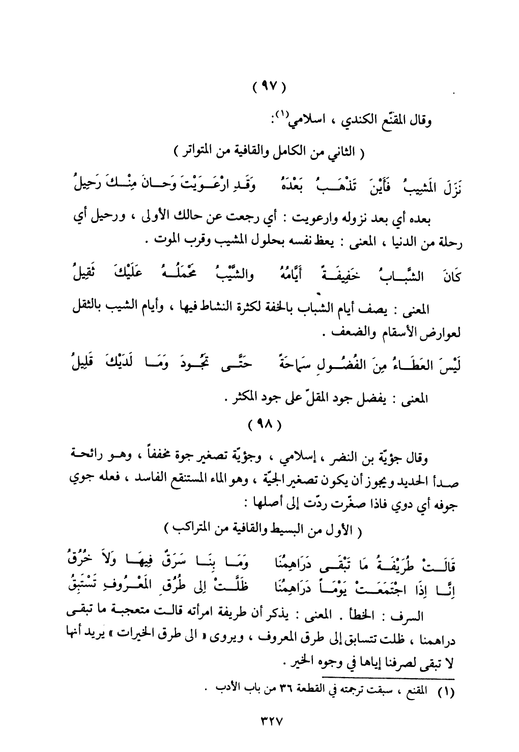 وقال المقنع الكندي، إسلامي:
