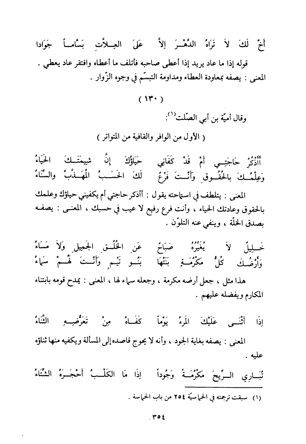 المعنى: يتلطف في استماحته يقول: أأذكر حاجتي أم يكفيني حياؤك وعلمك بالحقوق وعادتك الحياء، وأنت فرع رفيع لا عيب في حسبك، المعنى: يصفه بصدق الخلة، وينفي عنه التلون.