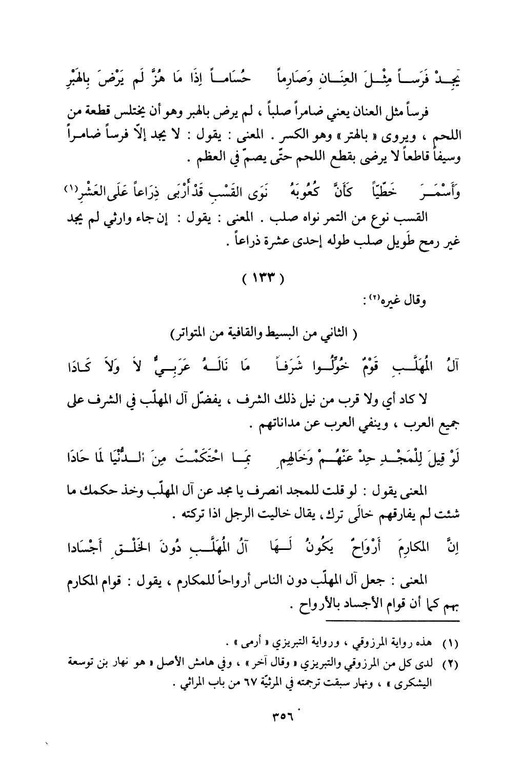 لا كاد أي ولا قرب من نيل ذلك الشرف، يفضل آل المهلب في الشرف على جميع العرب، وينفي العرب نع مداناتهم.