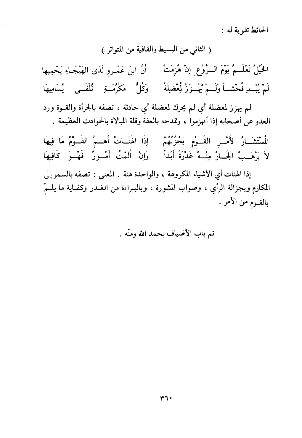 (الثاني من البسيط والقافية من المتواتر)