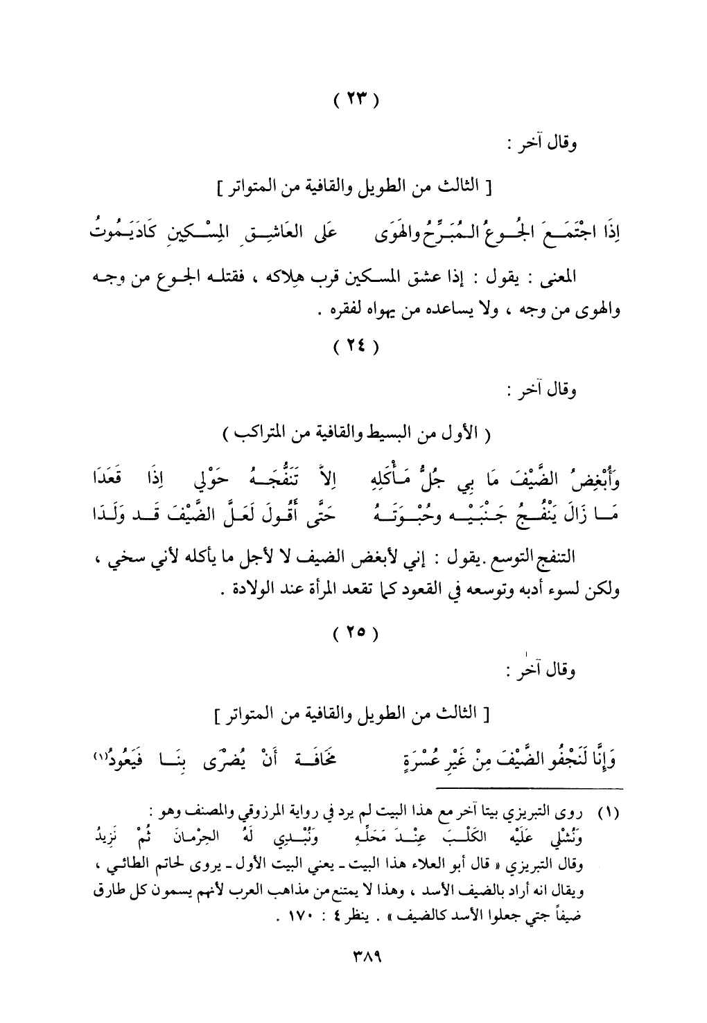 وإنا لنجفو الضيف من غير عسرة ... مخافة أن يضرى بنا فيعود