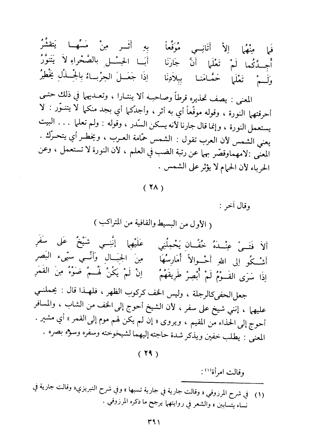 جعل الحفى كالرجلة، وليس الخف كركوب الظهر، فلهذا قال: يحملني عليهما، إنني شيخ على سفر، لأن الشيخ أحوج إلى الخف من الشاب، والمسافر أحوج إلى الحذاء من المقيم، لأن الشيخ أحوج غلى الخف من الشاب، والمسافر أحوج إلى الحذاء من المقيم، ويروى "إن لم يكن لهم موم إلى القمر" أي مشير.