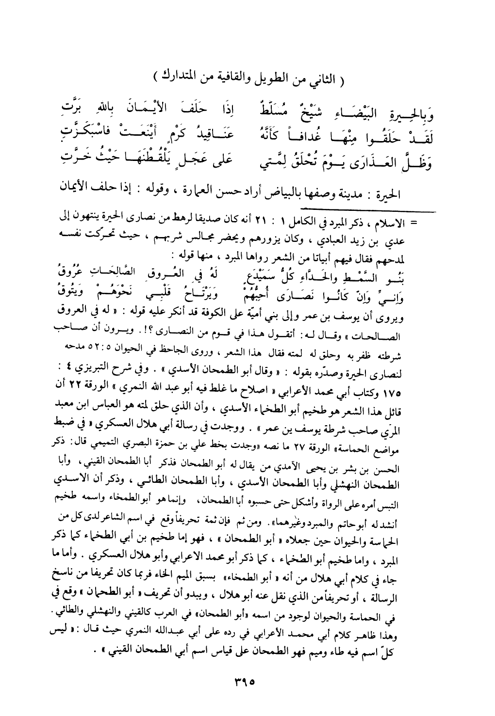 الحيرة: مدينة وصفها بالبياض أراد حسن العمارة، وقوله: إذا حلف الأيمان