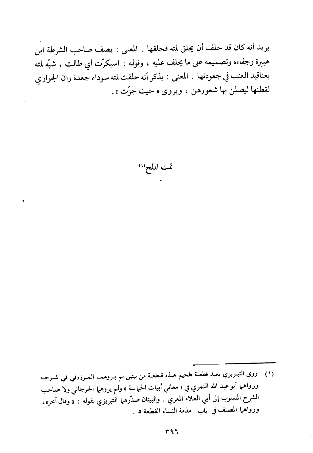 يريد أنه كان قد حلف أن يحلق لمته فحلقها. المعنى: يصف صاحب الشرطة ابن هبيرة وجفاءه وتصميمه عليه، وقوله: اسبكرت أي طالت، شبه لمته بعناقيد العنب في جعودتها، المعنى: يذكر أنه حلقت لمته سوداء جعدة وأن الجواري لقطنها ليصلن شعورهن، ويروى "حيث جزت".