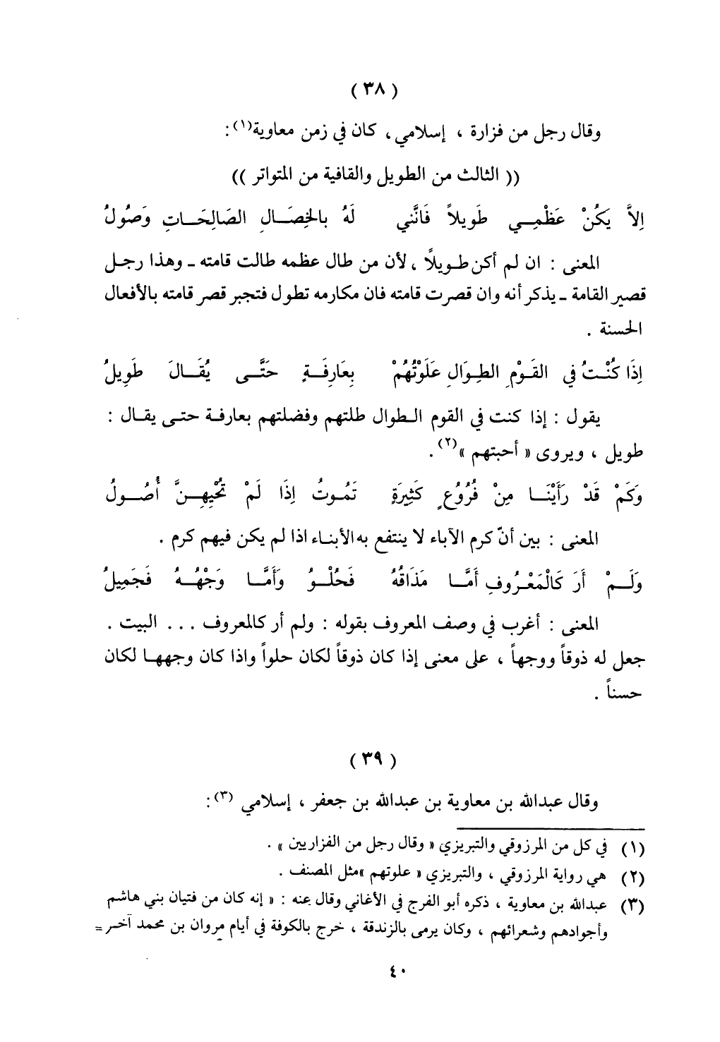 إذا كنت في القوم الطوال علوتهم بعارفٍة حتى يقال طويل