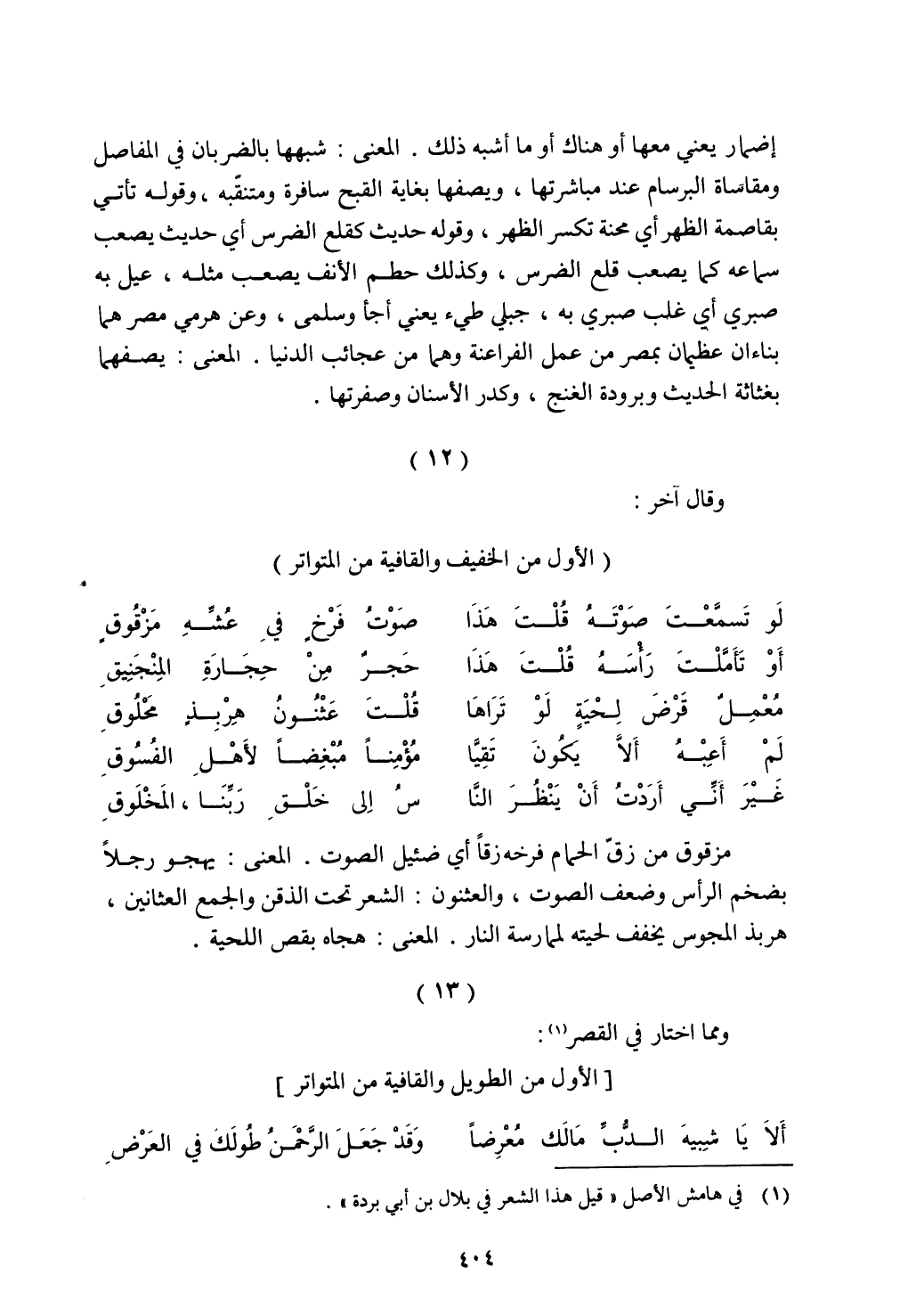 مزقوق من زق الحمام فرخه زقاً أي ضئيل الصوت. المعنى: يهجو رجلا بضخم الرأس وضعف الصوت، والعثنون: الشعر تحت الذقن والجمع العثانين، هربذ المجوس يخفف لحيته لممارسة النار. المعنى: هجاه بقص اللحية.