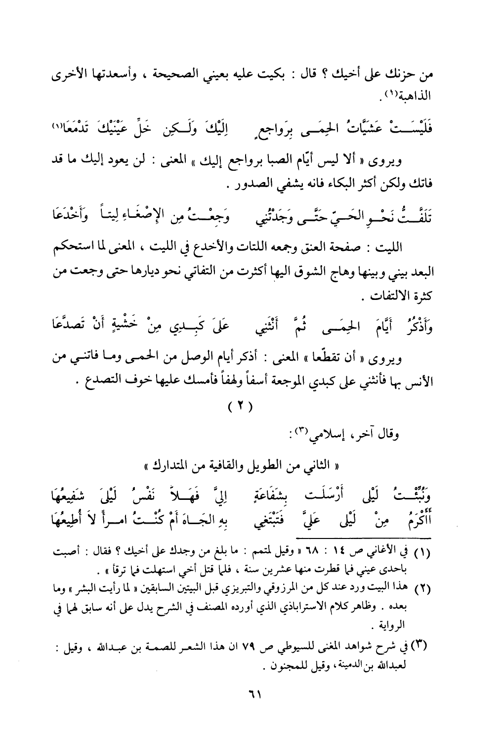 ويروي "ألا ليس أيام الصبا برواجع إليك" المعنى: لن يعود إليك ما قد فاتك ولكن أكثر البكاء فإنه يشفي الصدور.